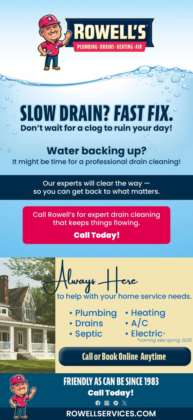 "Friendly As Can Be Since 1983!" When you need help with your plumbing, drains, heating, cooling or electrical in Hooksett, you can always rely on Rowell's Services! Call us now or book online!